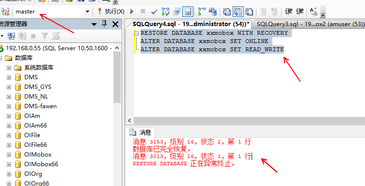 數據庫還原成功后(狀態為:關閉,正常),服務無法鏈接 數據庫還原成功后(狀態為:關閉,正常),服務無法鏈接