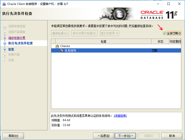 注意:若出現(xiàn)失敗,可以選擇全部忽略