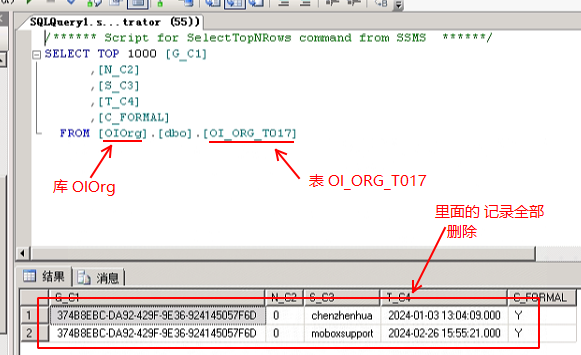通過(guò) SQL的管理器,打開(kāi) 數(shù)據(jù)庫(kù)OIOrg 的 OI_ORG_T017表