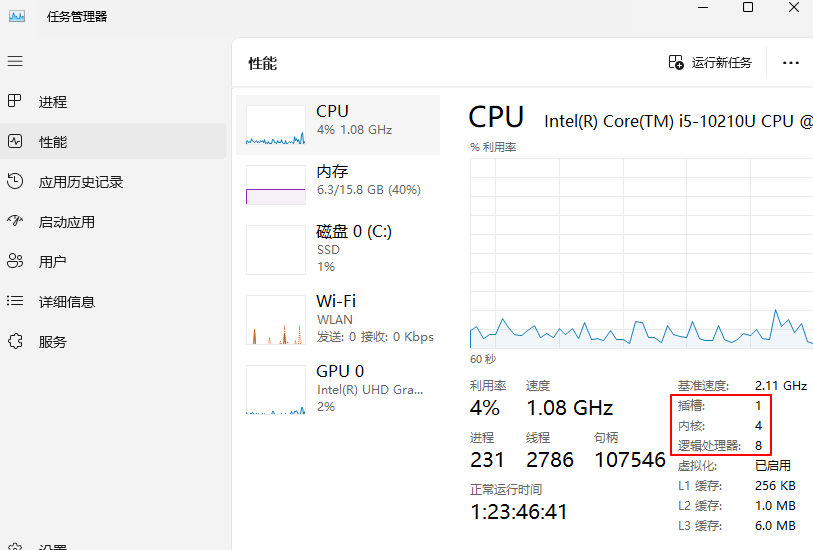 - 在該選項框中,即可看到CPU、GPU的核心數(shù)以及相關的信息。