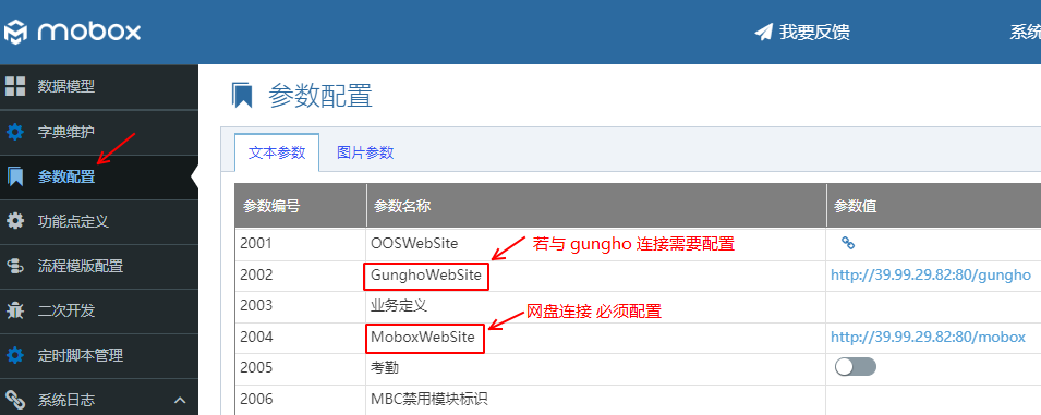 2)Mobox網盤/文檔系統,需要設置如下服務參數