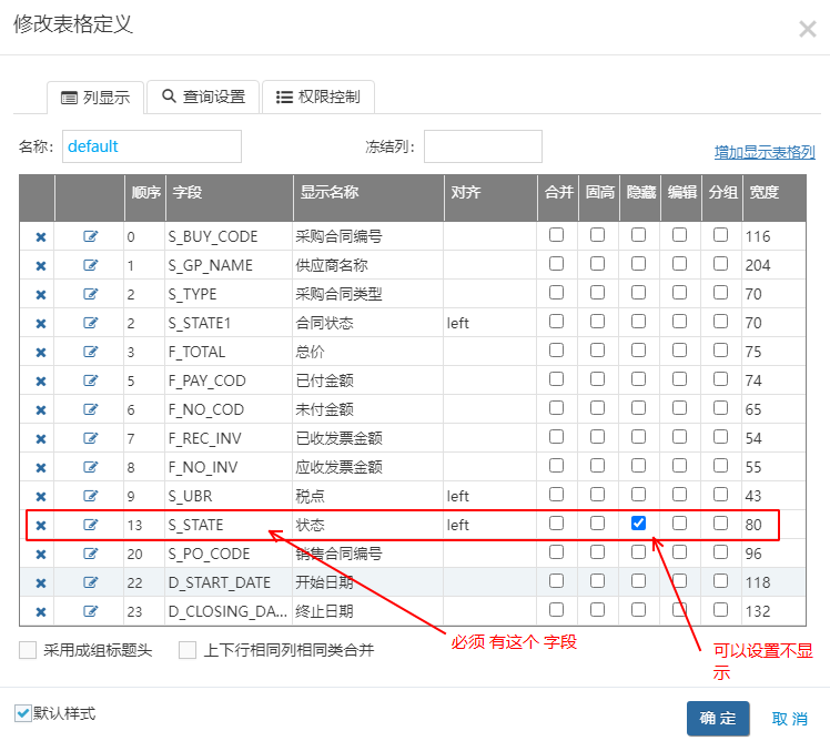 -》在grid列表定義里面 ,必須有 “S_STATE” 狀態(tài)? 這個字段